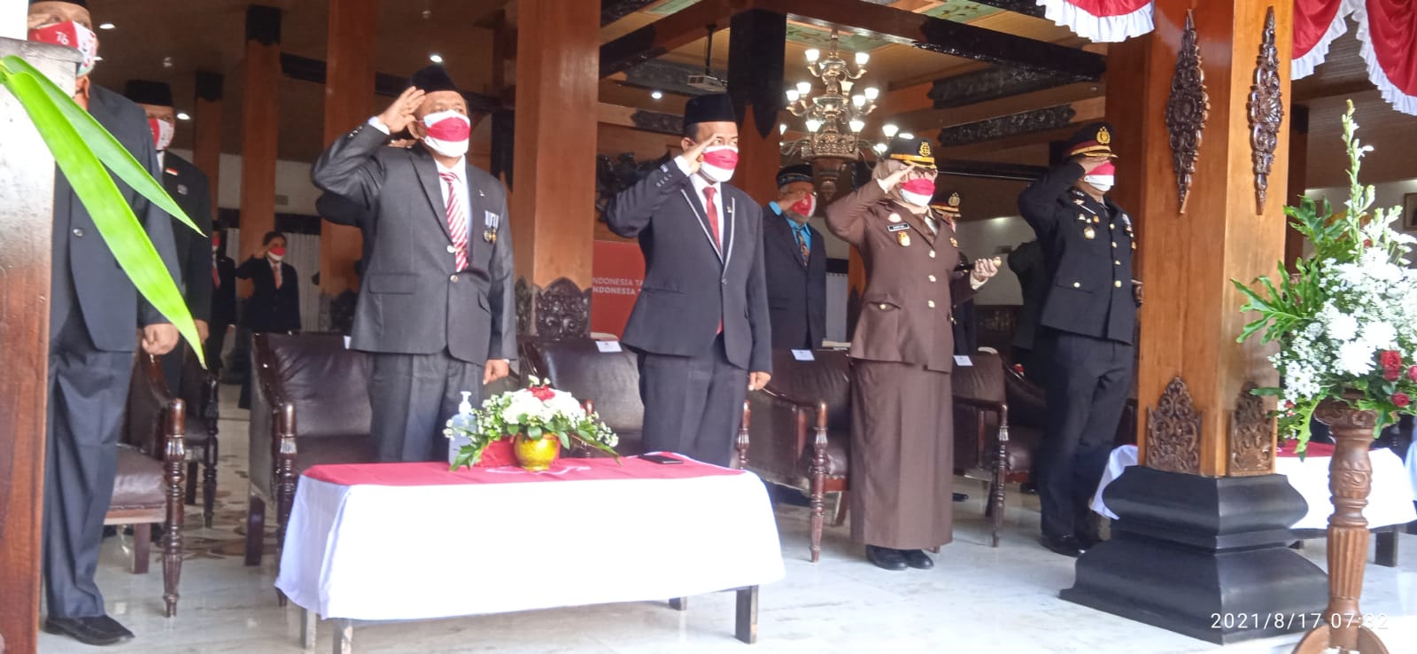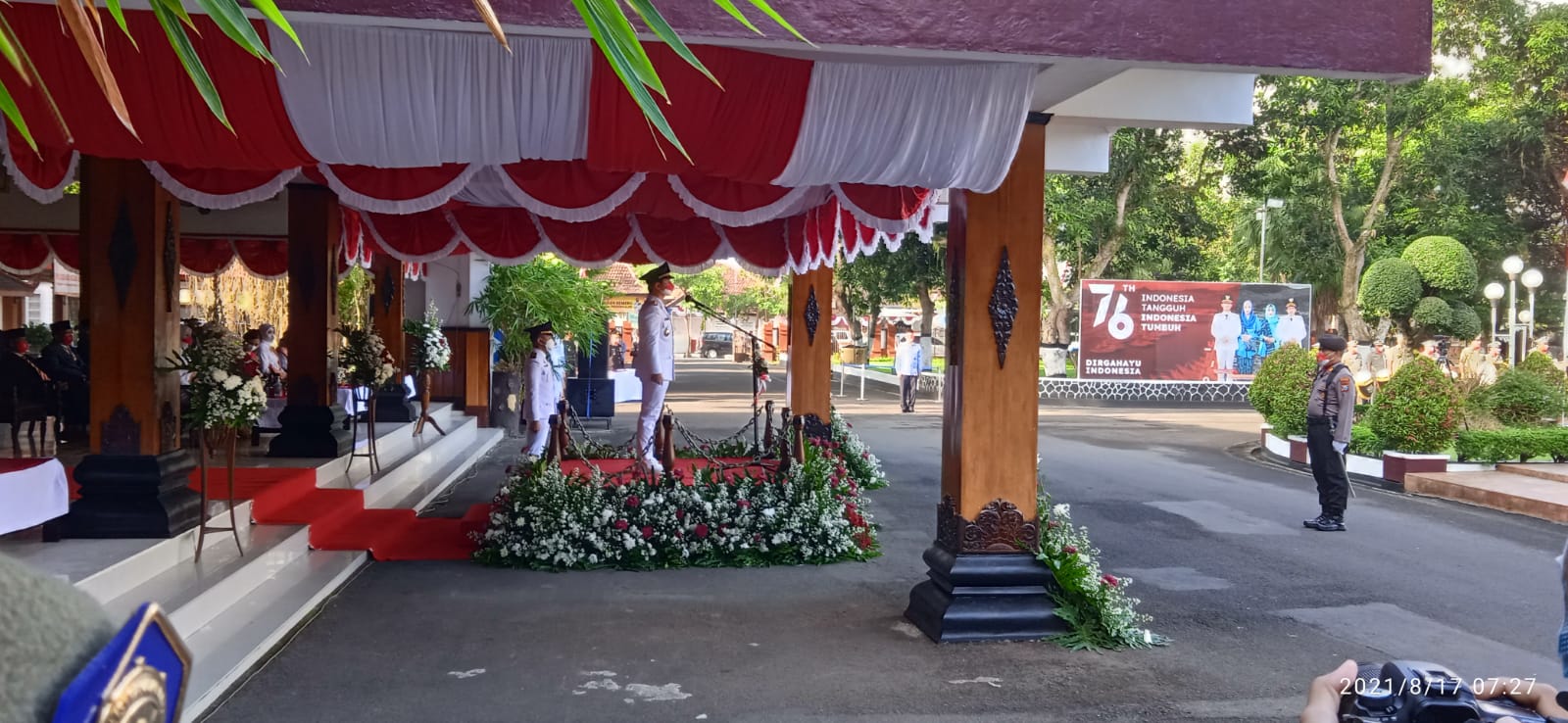 Ketua Pengadilan Agama Trenggalek H. A. Zahri, S.H, M.H.I hadiri pelaksanaan Upacara HUT Republik Indonesia ke 76 di Pendopo Kabupaten Trenggalek, upacara yang berlangsung khidmat ini dilaksanakan mulai Pukul 10.00 dengan menetapkan protokol Covid 19 secara ketat.