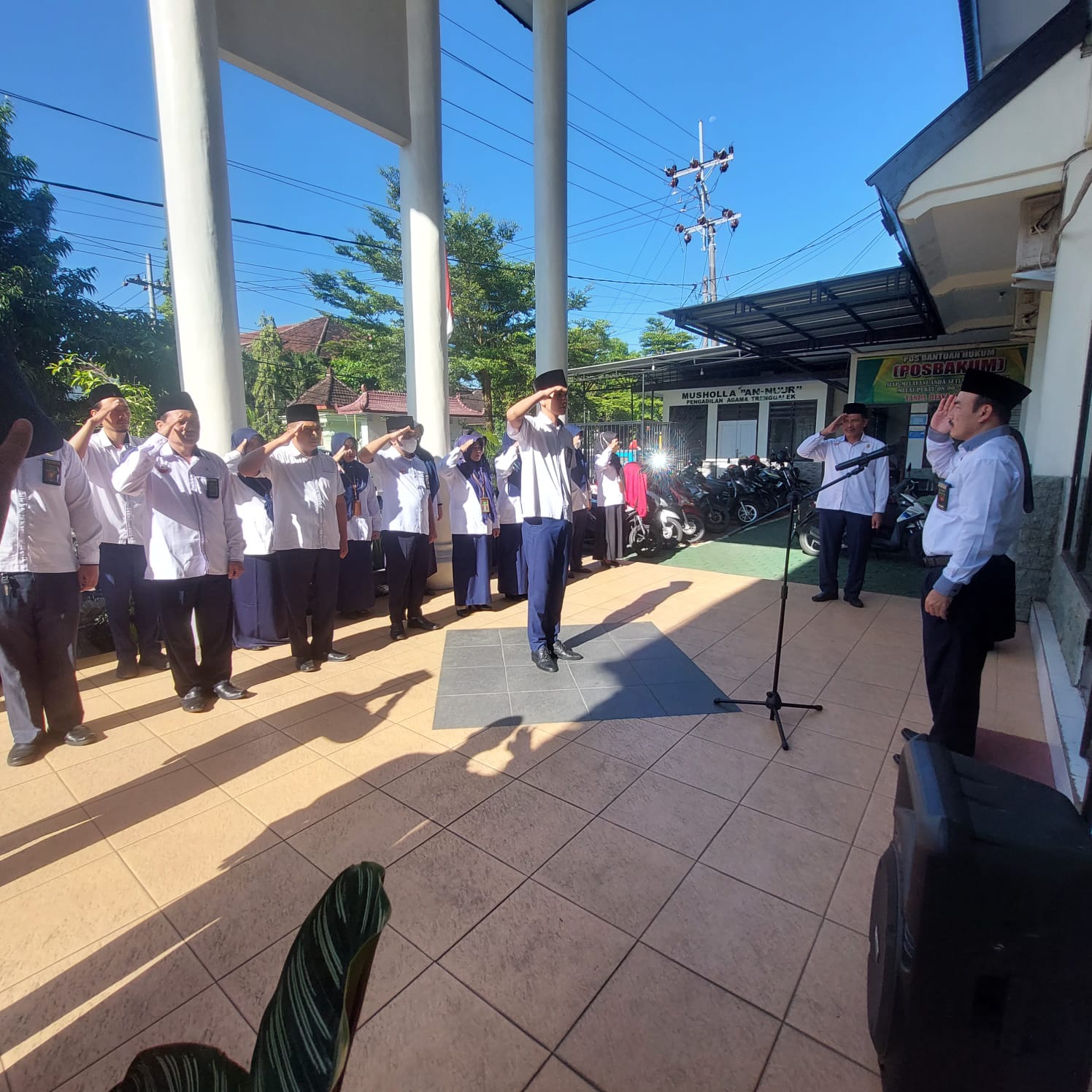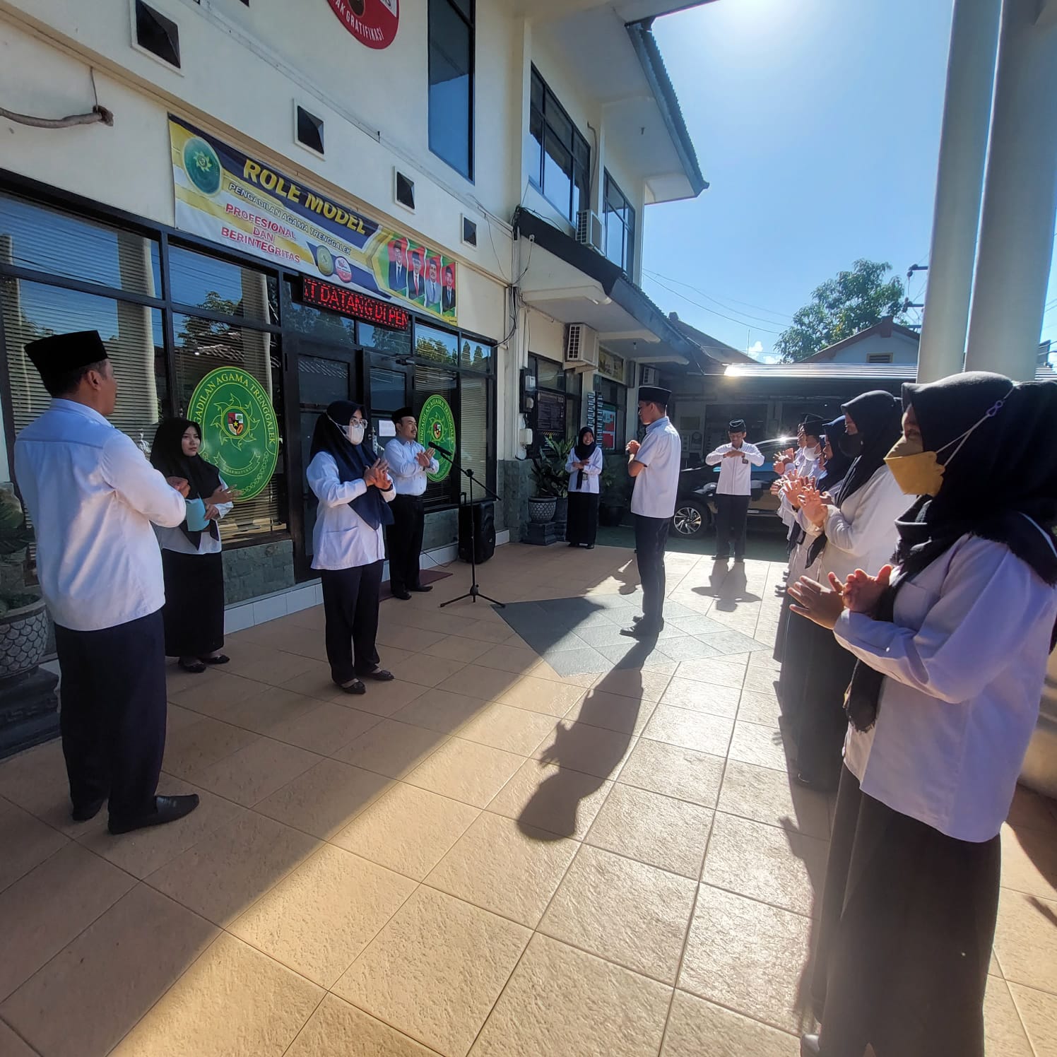 Sebelum menyampaikan amanatnya beliau menggelorakan yel-yel Pengadilan Agama Trenggalek “ Pengadilan Agama Trenggalek : Sip..Sip..Sip..” Dengan slogan tersebut diharapakan seluruh pegawai tetap semangat dalam melaksanakan tugas.