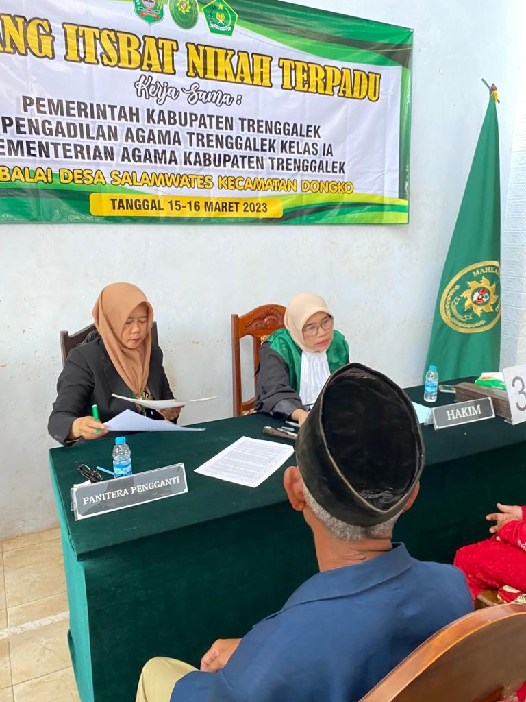 Tujuan dilaksanakannya sidang Itsbat nikah terpadu untuk meningkatkan akses terhadap pelayanan dibidang hukum serta membantu masyarakat di Wilayah Hukum Pengadilan Agama Trenggalek tepatnya di Desa Salawates Kecamatan Dongko Kabupaten Trenggalek. yang tidak mampu dalam memperoleh hak atas buku nikah dan akta kelahiran yang dilakukan dengan sederhana, cepat dan biaya ringan melalui layanan Sidang Terpadu.