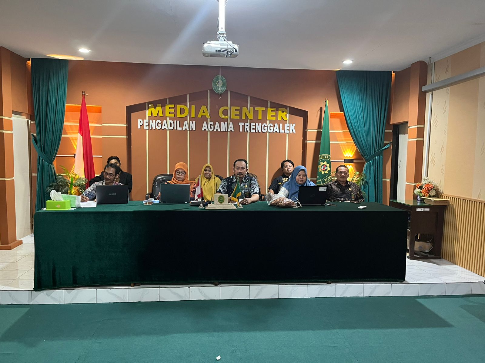 Pimpinan, pegawai dan seluruh PPNPN Pengadilan Agama Trenggalek menghadiri undangan berdasar surat Sekretaris Mahkamah Agung RI nomor 312 / SEK / UND.KKA / IX / 2024. Kegiatan yang diikuti oleh seluruh satuan kerja Mahkamah Agung (MA) baik tingkat banding maupun tingkat pertama ini membahas tentang Mekanisme Seleksi Pegawai Pemerintah dengan Perjanjian Kerja (PPPK). Sambutan dan materi acara disampaikan langsung oleh Sekretaris MARI, Sugiyanto, S.H., M.H. dan Kepala Biro Kepegawaian MARI, H. Sahlanudin, S.Ag., S.H., M.H. Kegiatan ini dilaksanakan secara daring melalui zoom meeting pada Selasa, 25 September 2024 pada pukul 14.00 WIB.