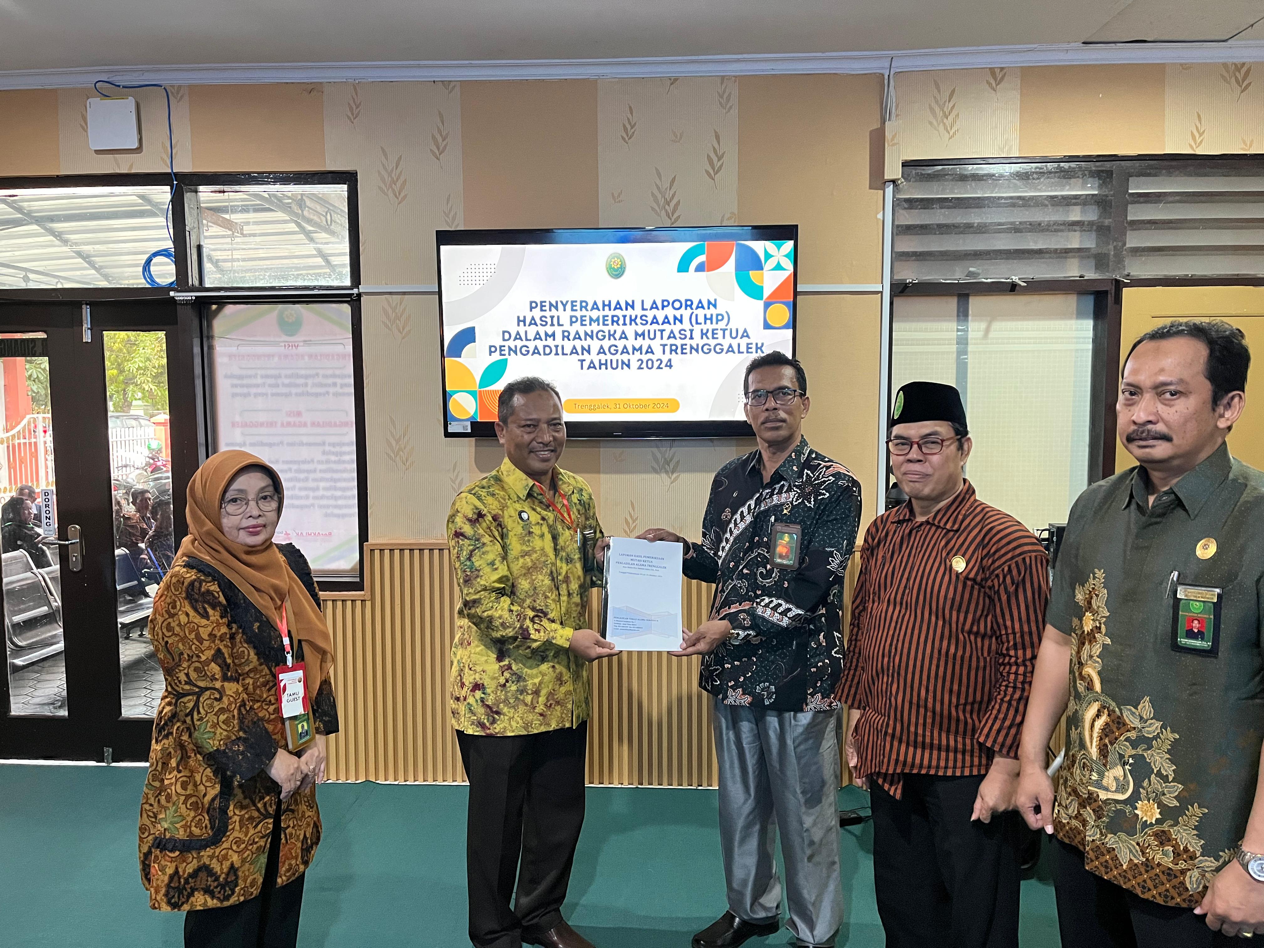 Diakhir pelakasanaan Audit/Pemeriksaan dalam rangak Mutasi Ketua Pengadilan Agama Trenggalek dilaksanakan Penyerahan Laporan Hasil Pemeriksaan (LHP) yang diserahkan oleh Pemeriksa/Hakim Tinggi Agama Surabaya beserta pendamping kepada Ketua Pengadilan Agama Trenggalek yang akan Mutasi ke Pengadilan Agama Jember. Penyerahan Laporan Hasil Pemeriksaan didampingi oleh Panitera dan Sekretaris Pengadilan Agama Trenggalek.
