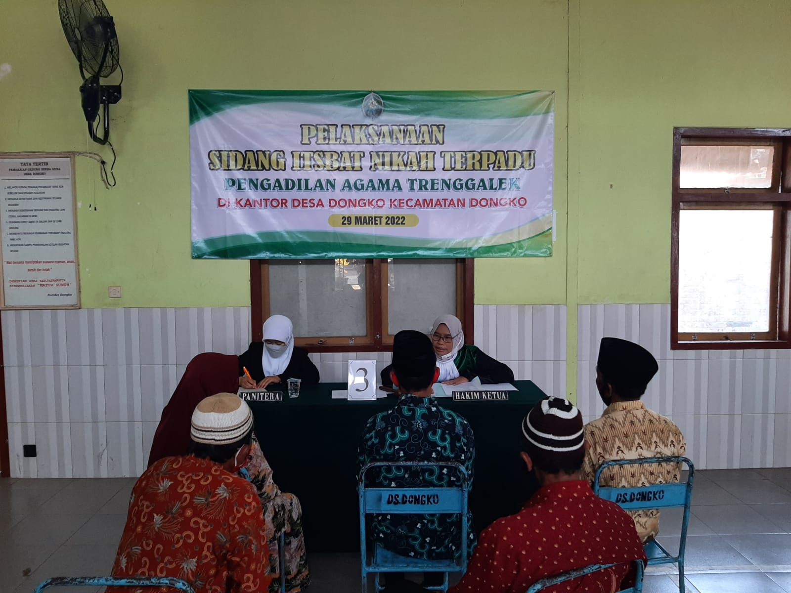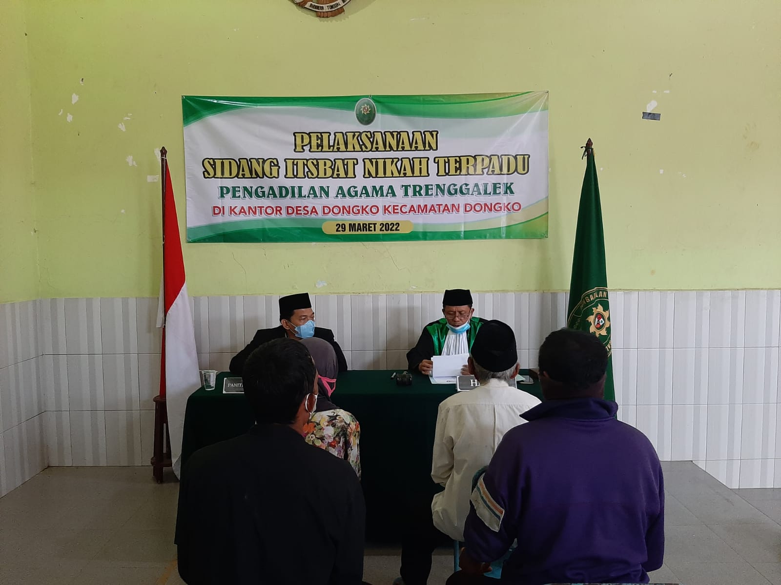 Bertempat di Balai Desa Dongko, Kecamatan Dongko, Kabupaten Trenggalek, Pengadilan Agama Trenggalek sukses laksanakan Sidang Isbath Terpadu. Siding Isbath Nikah Terpadu kali ini bekerjasama dengan Dinas Kependudukan dan Pencatatan Sipil Kabupaten Trenggalek dan Kantor Urusan Agama Kecamatan Dongko.